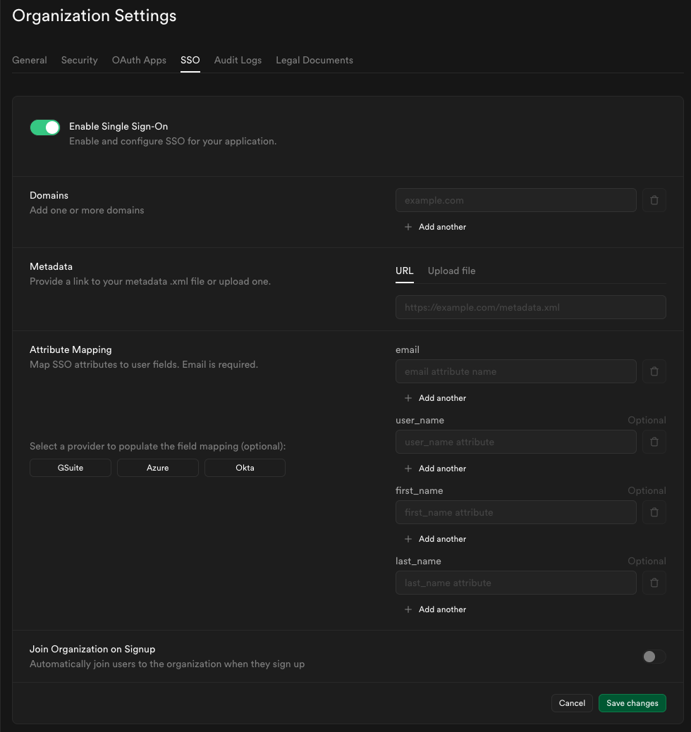 Enabling SSO for an organization
